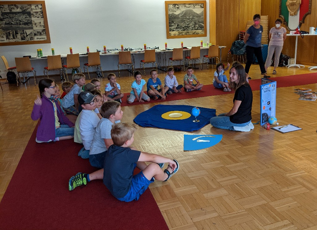 Frau Sonja Hufnagl aus Neukirchen bei Altmünster, Mitglied des astronomischen Arbeitskreises Salzkammergut, entführte die anwesenden Kinder ins Weltall.